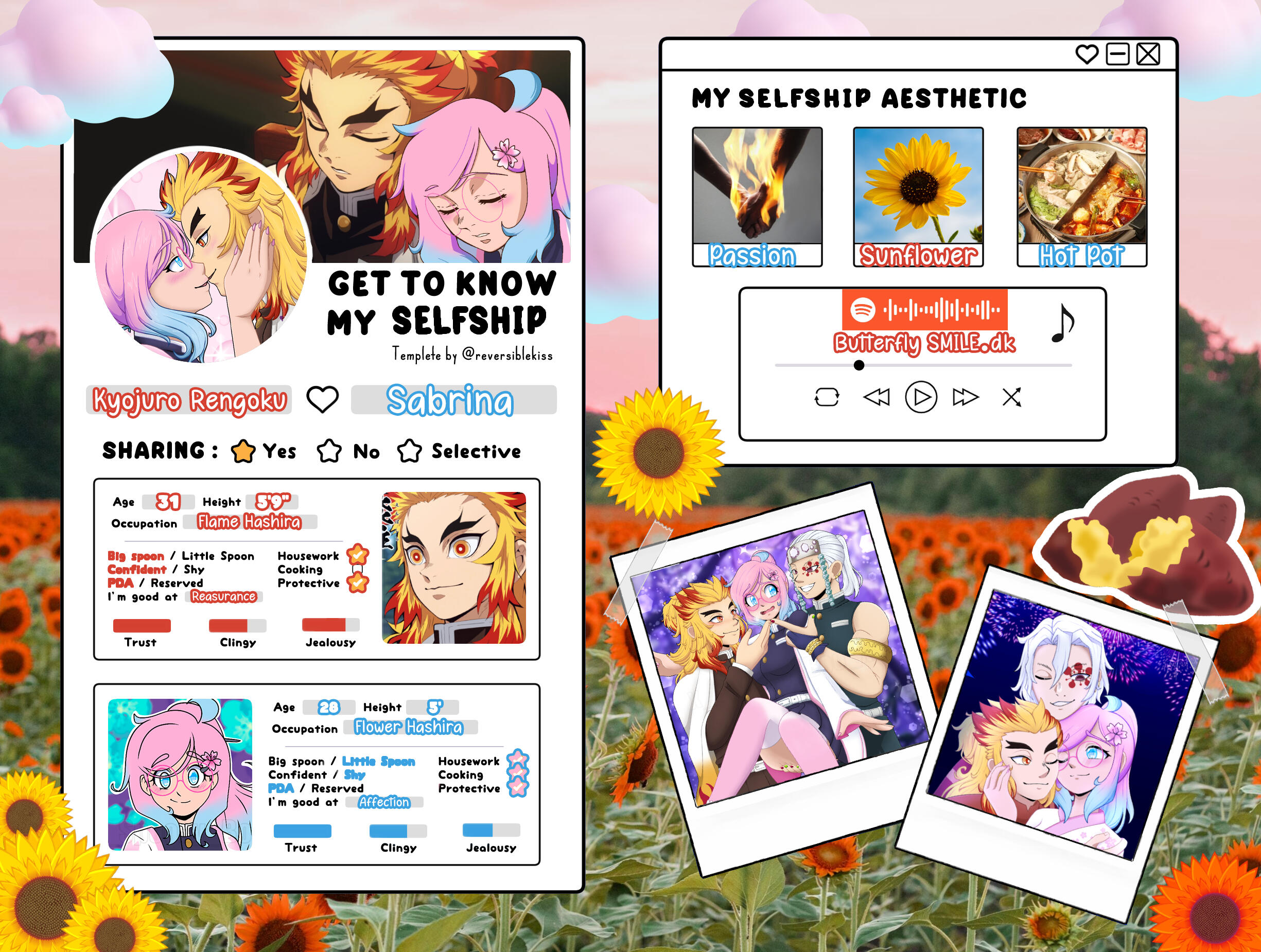 Hello! Welcome to my self shipping catalog! Here you can find all the characters that I ship with myself! If you find that cringe! Cool! Come tell me how cringe you think I am at SpookyBooVT! We welcome the cringe :)